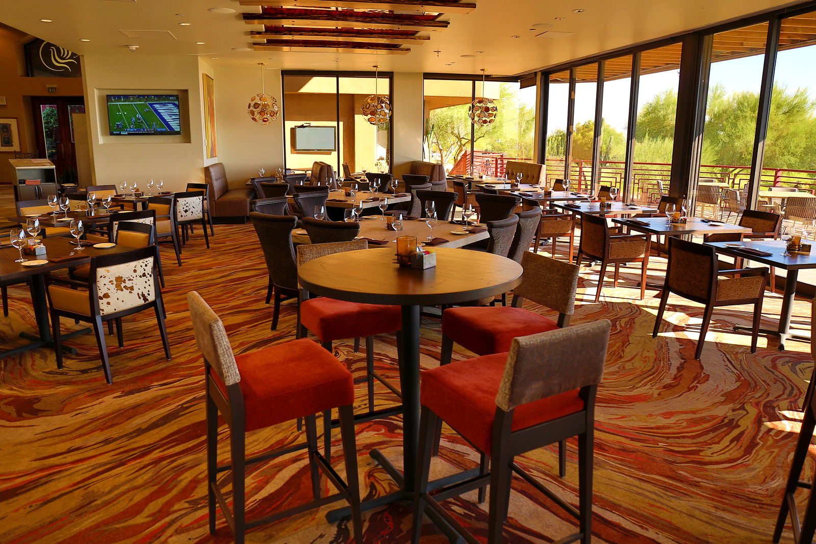 The golf course at the Ancala Country Club is a challenging course set in the Sonoran desert, nestled in the foothills of the McDowell Mountains. The fairways and undulating greens, known for their speed, are immaculately manicured. The course has a target-style layout with well-placed bunkers guarding most of the landing areas, including the greens. A lake runs the length of two holes, creating water hazards, and desert ravines run across the lush fairways. The course is known for the challenging game it offers, making shotmaking and accuracy a priority. Ancala Country Club also has five sets of tees for several different golfing options.